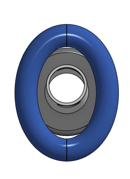 And this is how it all works. The donut is both narrower and taller than the retainer. So, how exactly do we get the retainer in there. Easy, we rotate it: