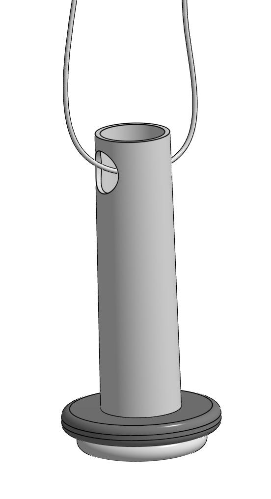Now, this is a tetherspout. It consists of the spout (the tube) and the retainer, what is basically a washer. Critically the flange at the end of the spout prevents the retainer from falling off and the retainer’s outer diameter is larger than the flange. Do make sure your retainer doesn’t slip off the end of your spout before installing. You’d hate to have been given a retainer that’s too large for your spout.