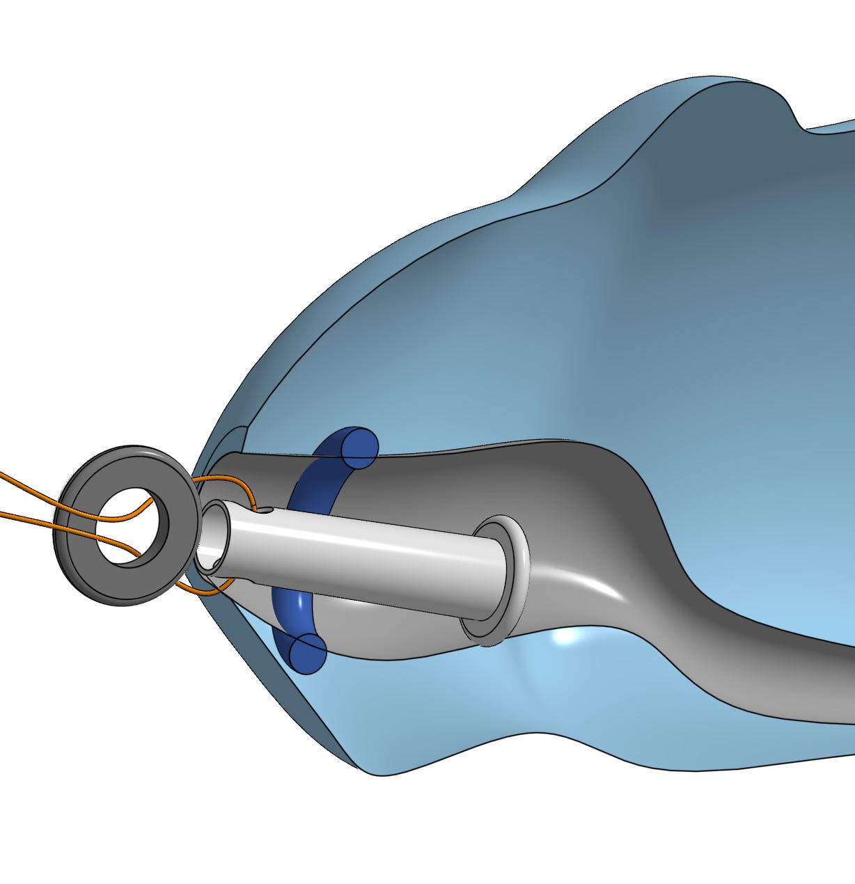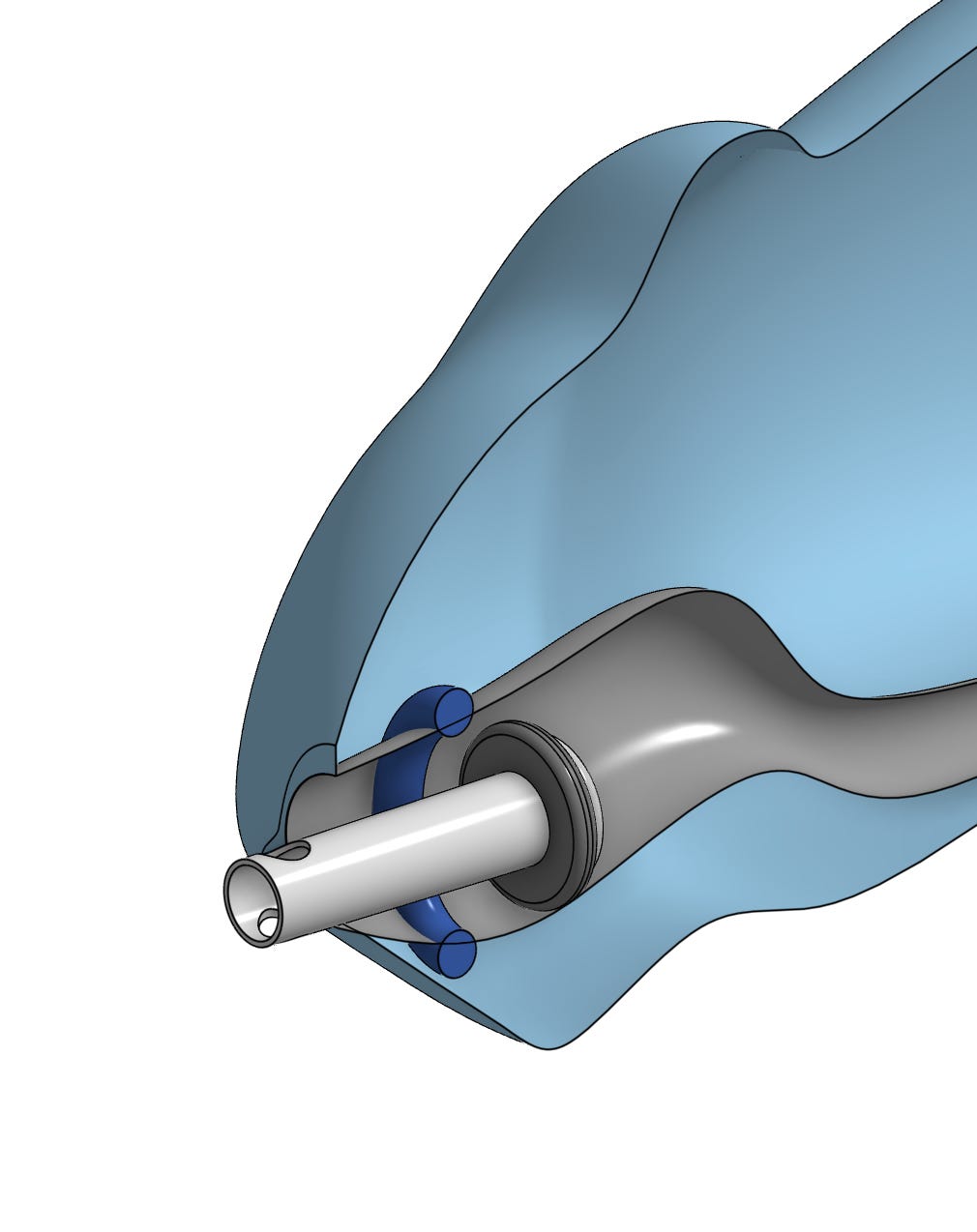 Below is a cross section of a penis. Obviously this isn’t entirely accurate. Not even close, But it’s accurate enough for our purposes. There are a couple of things to note. You see that larger area of the urethra just inside the tip (the meatus). That’s the fossa navicularis and that’s where all the business is going to be happening. And you see that little blue oval? I don’t know what that’s called but let’s call it the donut and it’s how tetherspouts work.